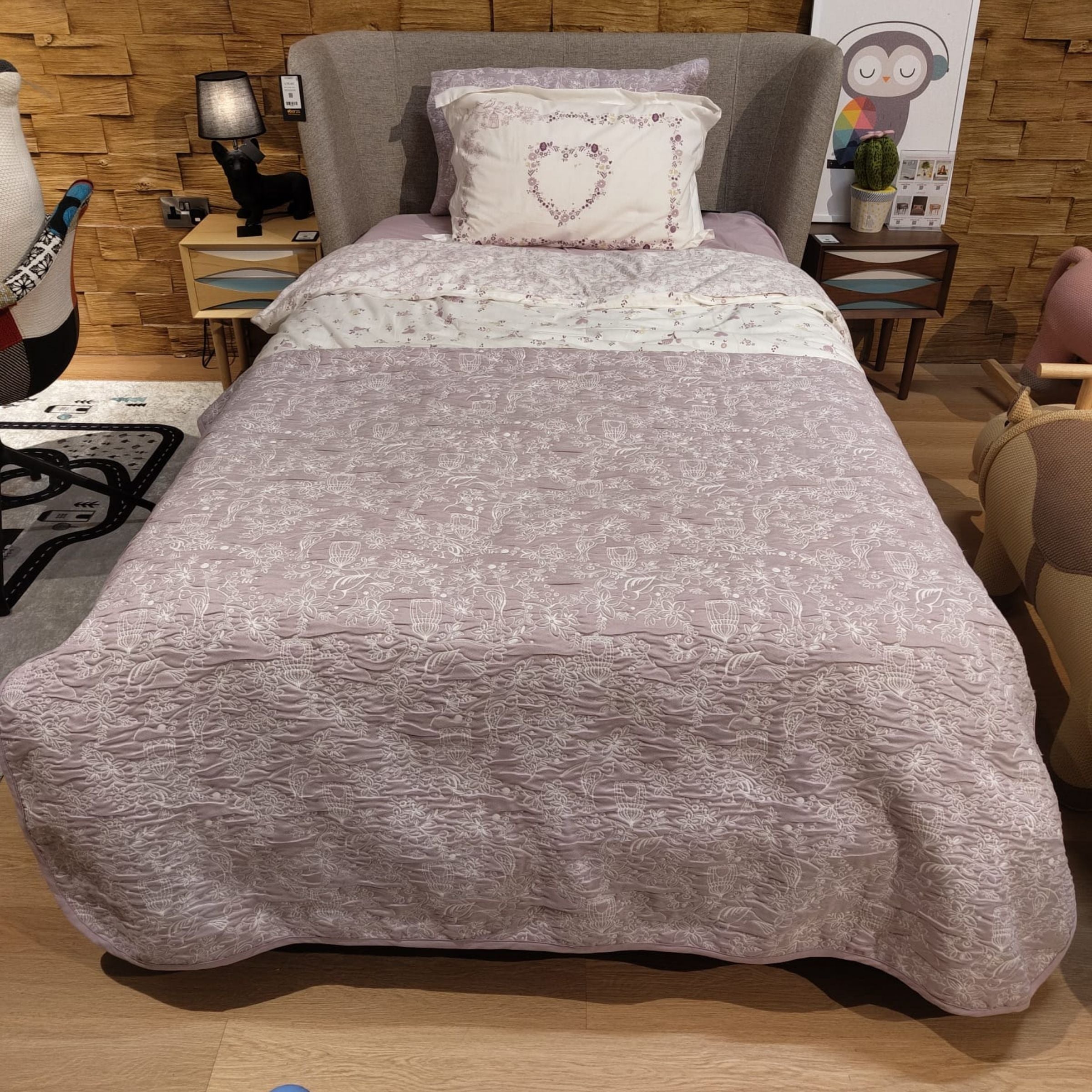 Singled Size Bed covered with finest cotton fabric and powder-coated steel legs |