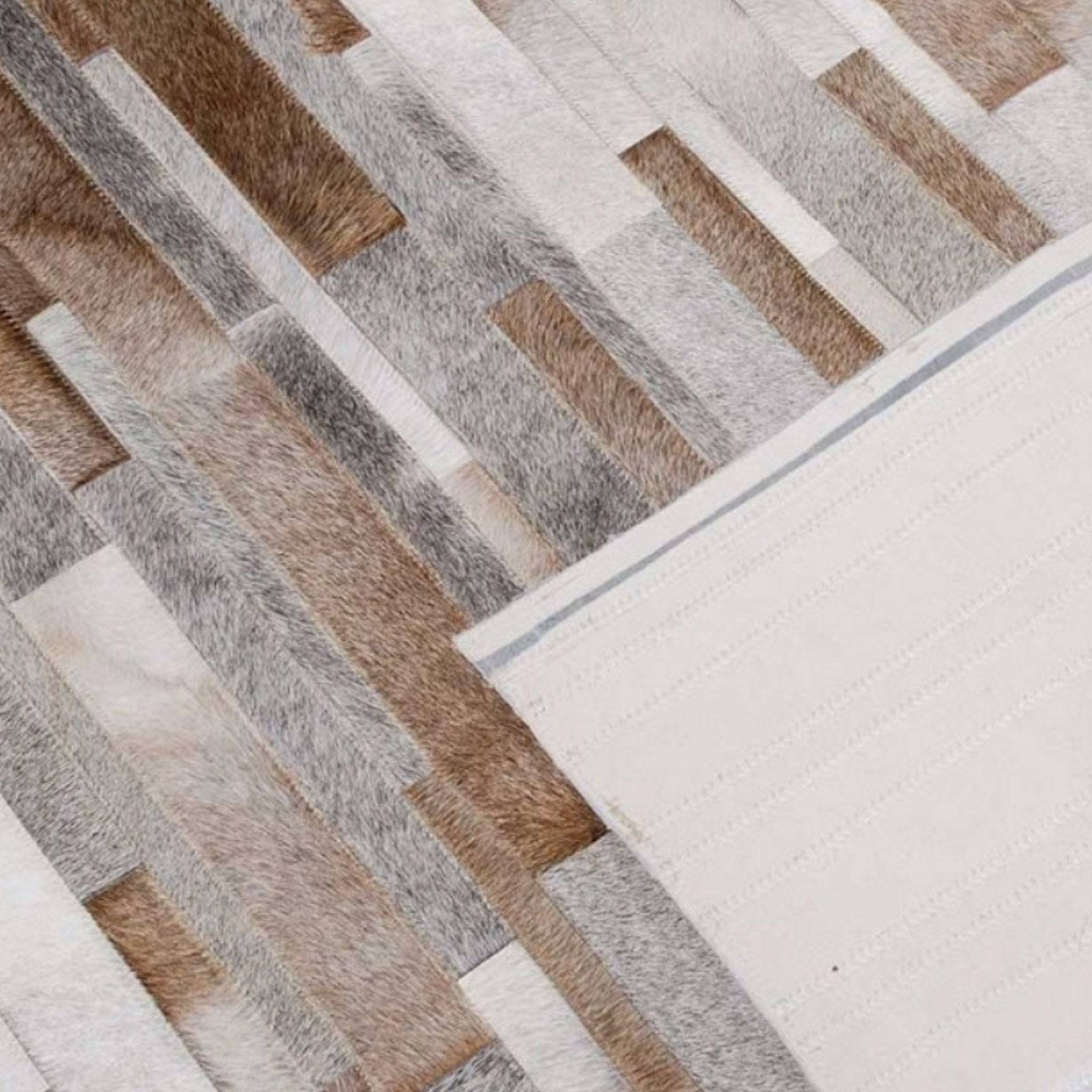 تتلاقى الأناقة العصرية مع السحر الريفي في هذه السجادة الجميلة المصنوعة من جلد الأبقار. السجادة مصنوعة من قطع حقيقية من جلد الأبقار مع الشعر، حيث تتراوح قطع الجلد بين الألوان الرمادية إلى الألوان الطبيعية. توفر الطبقة الخلفية من الفelt حماية للسجادة من خدش الأرضيات، وتوفر قليلاً من التبطين لمزيد من الراحة.