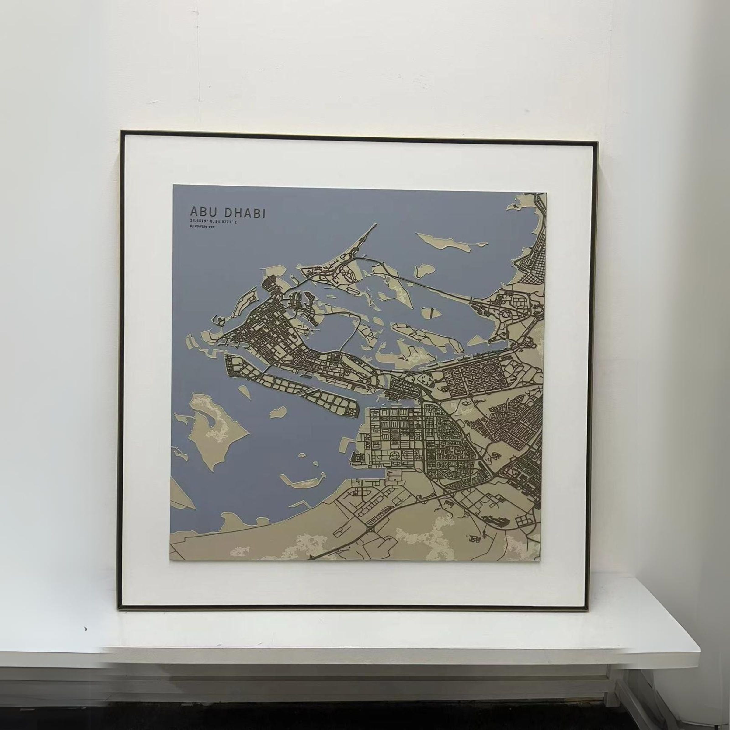 PCA-007 - لوحة خريطة أبو ظبي مصنوعة يدويًا، مقاس 140×140 سم