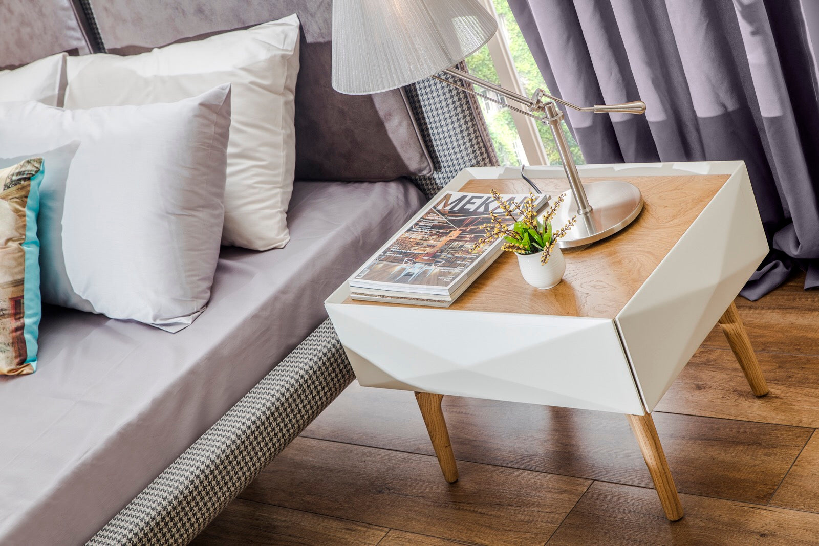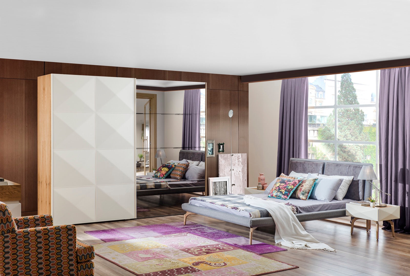 1x إطار سرير بحجم كينج 185*225 حجم المرتبة 180*200 سم (غير مدرجة) 2x طاولات جانبية 70*70 1x مضمد 1x مرآة |