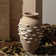 مزهرية أسمنتية باللونين البيج والأبيض مع تفاصيل الصدفة -A FF-SN24027A