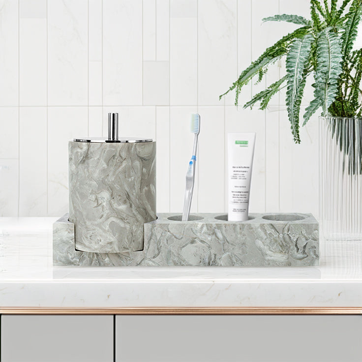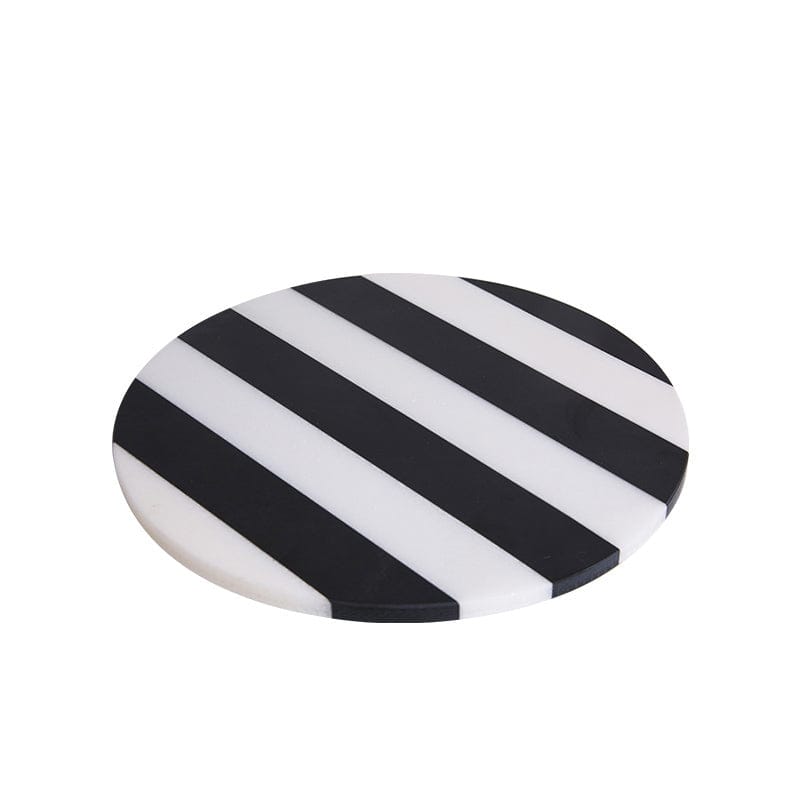 جرة قطن دائرية من الرخام باللونين الأسود والأبيض مع غطاء فضي CBJ890-6