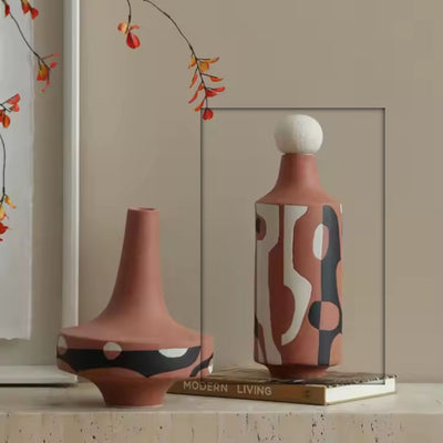 مزهرية خزفية مطلية يدويًا باللونين الأسود والأبيض باللون الأحمر FD-D25054A