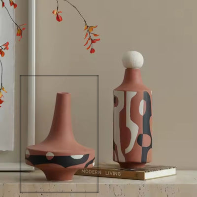 B FD-D25054B- مزهرية خزفية مطلية يدويًا باللونين الأسود والأبيض باللون الأحمر
