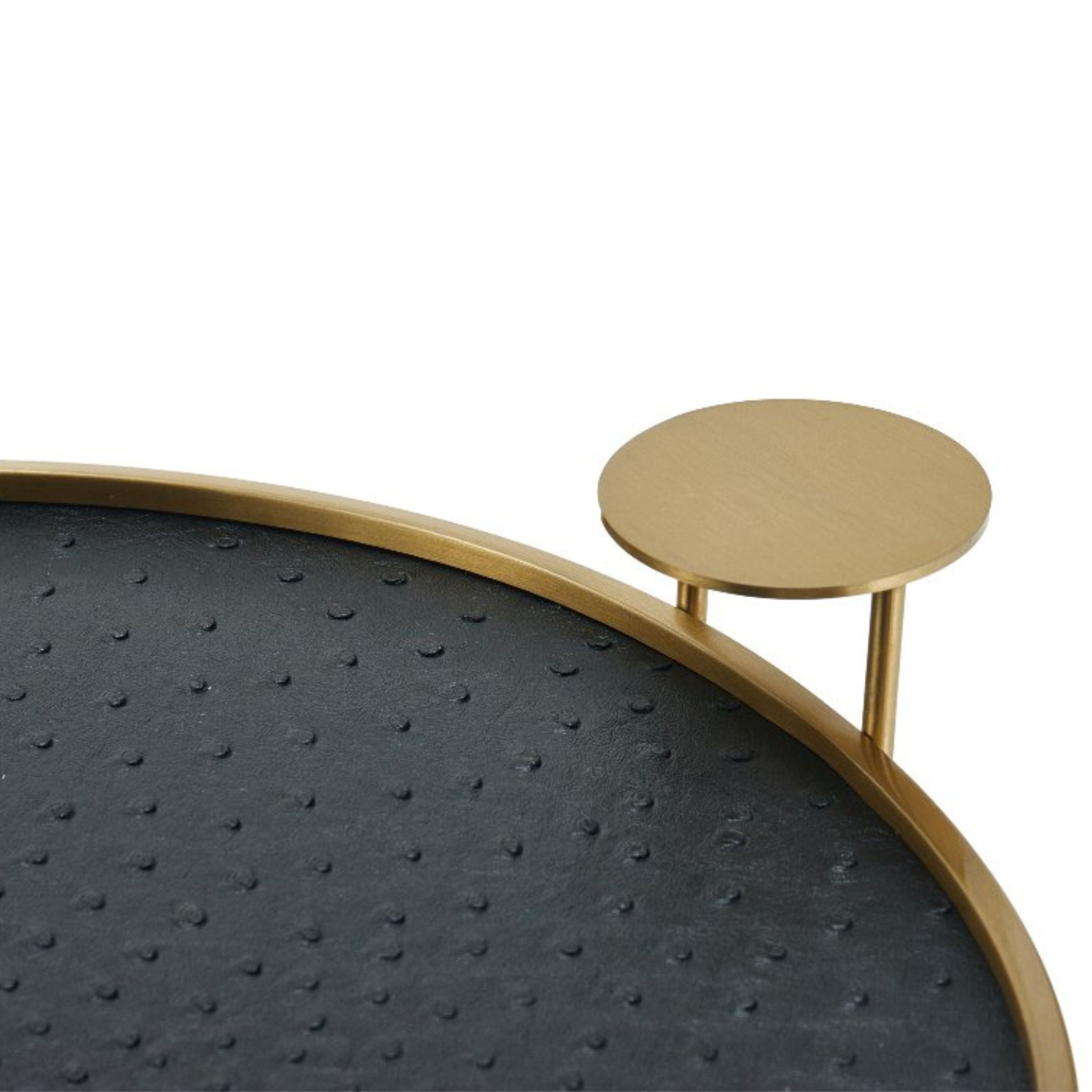صينية زخرفية مستديرة باللون الأسود والذهبي المصقول - L DD210939FL