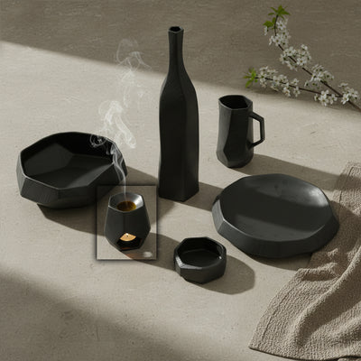 استمتع بالأناقة الراقية مع هذا المبخر النفطي الأسود المنحوت من الحمم البركانية، تحفة فنية تضيف بعداً معمارياً إلى طقوس العطور في منزلك. تلتقط السطح البركاني الملمس الضوء بطرق غير متوقعة، كاشفة عن انحناءات دقيقة تعزز الجمالية البصرية لأي غرفة. صُمم هذا المبخر لأولئك الذين يقدرون الجودة والتصميم، حيث يمزج بين الوظيفة والشكل بسلاسة، مما يسمح لك بنشر الزيوت التي تختارها مع خلق حضور زخرفي جذاب. تصميمه العميق والآسر يجعله خياراً استثنائياً للديكورات الداخلية المختارة التي تحتفل بالحرفية الفنية والحس المعاصر.