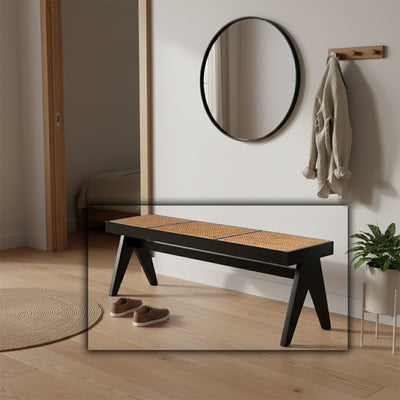 مقعد خشبي أسود مع شبكة طبيعية MLL-WB01