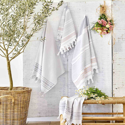 هذه المجموعة القطنية المضلعة مثالية للمنزل العصري. صُنعت باستخدام تقنية "الالتواء المنخفض" الذكية ، مما يجعلها تشعر بالانتفاخ الشديد والجفاف السريع ، ونعتقد أنها رائعة للأسر المزدحمة وعشاق الملمس المريح. يكمن جمال مناشف قطن مائي في أنها ستبقى ناعمة ومرنة ، حتى بعد غسلها.