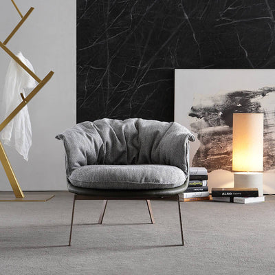 إطار فولاذي غلاف داخلي مغطى بجلد من الألياف الدقيقة على الجانب الخلفي ونسيج قطني على المقعد ،
