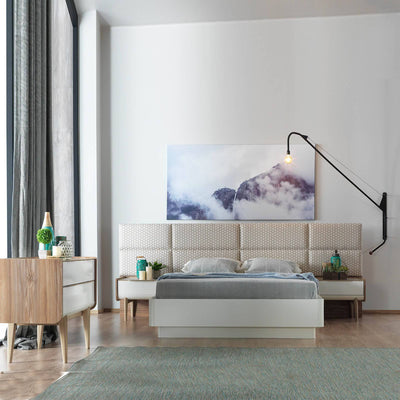 1x إطار سرير بحجم كينج 193*225 حجم المرتبة 180*200 سم (غير مدرجة) 2x طاولات جانبية 68*54 1x مضمد 120*50*90 1x مرآة 40*130 |