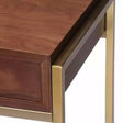 مكتب ، سطح قشرة خشب الجوز بطلاء خشب الدردار ، قاعدة من الفولاذ المقاوم للصدأ بلون ذهبي. | المواد |
