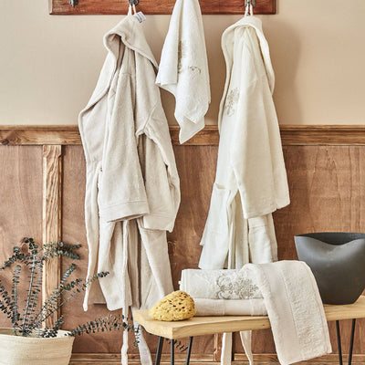 طقم عائلي مهرمة بامبو مطرز ذهبي تعيين المحتوى النساء: رداء حمام مطرز (صغير / متوسط) + فوطة رأس مطرزة 50 × 90 سم + منشفة جسم مطرزة 85 × 150 سم ذكر: روب حمام (L / XL) + منشفة رأس مقاس 50 × 90 سم + منشفة للجسم 85 × 150 سم |