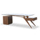 دراسة للعناصر المعمارية المكونة لهيكل المكتب. إنه يجلب التقدير الكامل للتحفة الحداثية. ينزلق الكرسي أسفل عوارض دعم من الرماد الصلب. عند النقطة التي يتحول فيها العمودي إلى أفقي ، تم قطع أشكال مستطيلة مستديرة من الحزم مما يخلق وهمًا متجدد الهواء شفافًا. بالاعتماد على أزرار دعم مرفوعة من الفولاذ المقاوم للصدأ ، توفر لوحة زجاجية مقواة بسمك 15 مم سطح كتابة أنيق للمنقلة. تطفو أكمام البراغي المصنوعة من الفولاذ المقاوم للصدأ على العوارض الخشبية عن سطح المكعب المضلع المكون من 5 أدراج. على الجانب الآخر ، يتم تحقيق الشفافية الكاملة من خلال درج واحد مفتوح يسحب للخارج مغطى بلوح زجاجي مقاس 15 مم. يمتد قضيبان فولاذيان من عوارض ذراع الرافعة ، مما يدعم الحافة الخارجية للدرج الشفاف. أعجوبة التصميم معاد إنتاجها بشكل استثنائي ومغلفة بلمسة نهائية لامعة رائعة.