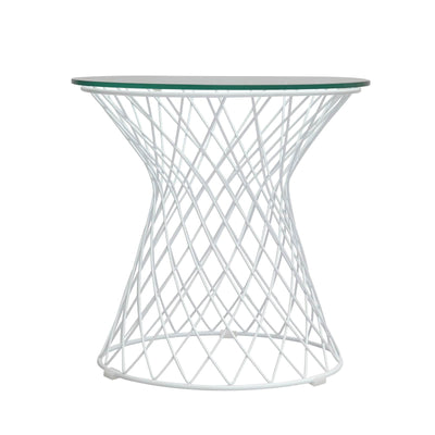 تتمتع هذه الطاولة الجانبية المستديرة بمظهر عصري بإطارها المعدني