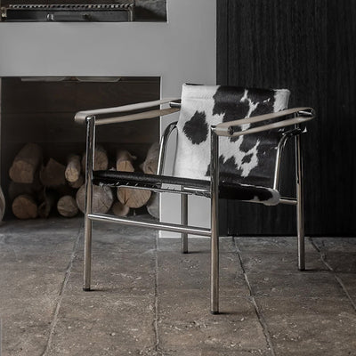 تم بناء هذه الصالة المقلدة من إطار من الفولاذ المقاوم للصدأ، وهو مصقول إلى درجة عالية من اللمعان. يحتوي على مقعد وظهر من جلد البقر، وهو متدلي ومشدود بإحكام عبر الإطار. تُستخدم الأشرطة البلاستيكية للحصول على دعم إضافي. وهذا يلغي الحاجة إلى التوسيد ويخلق جمالية فريدة وثورية في وقتها.