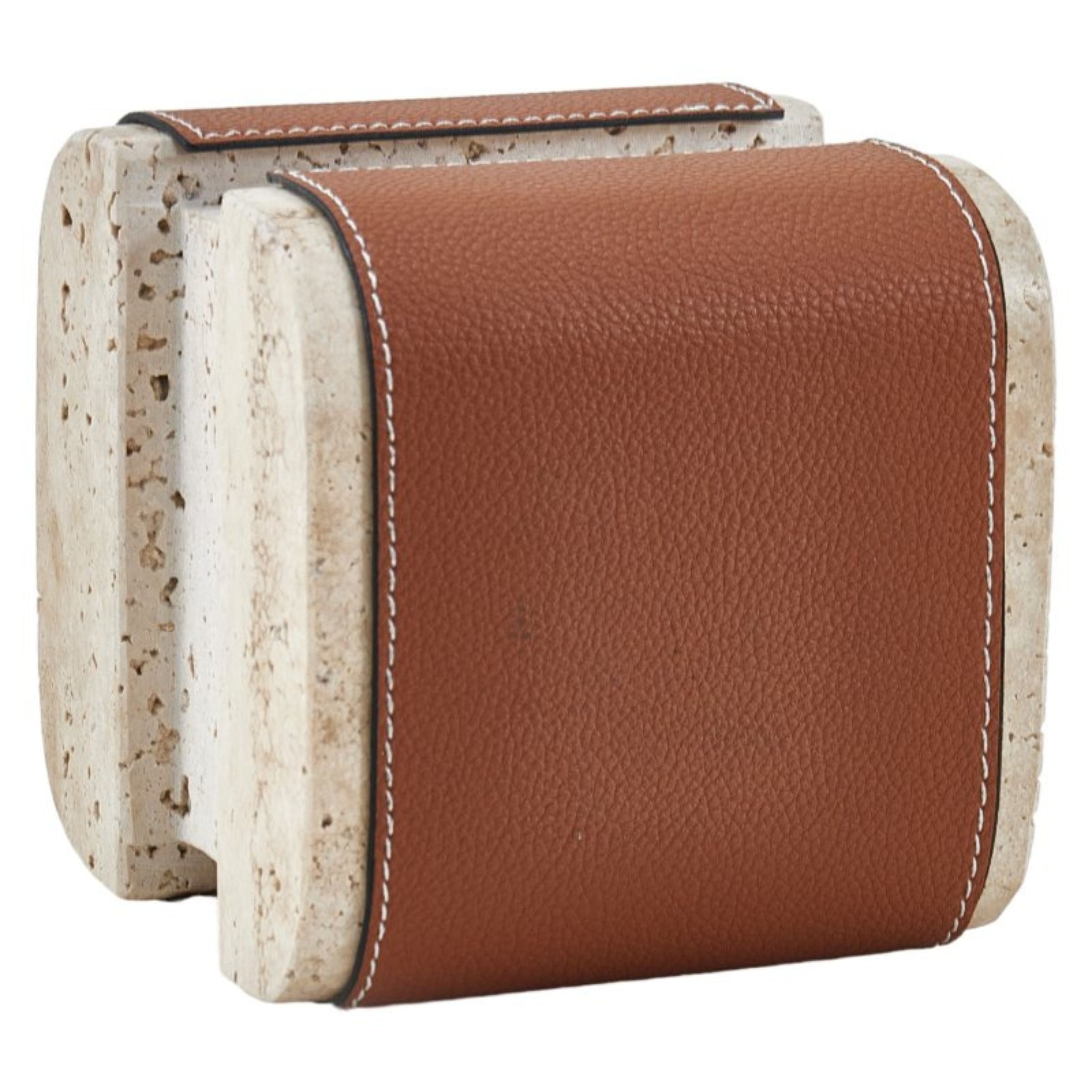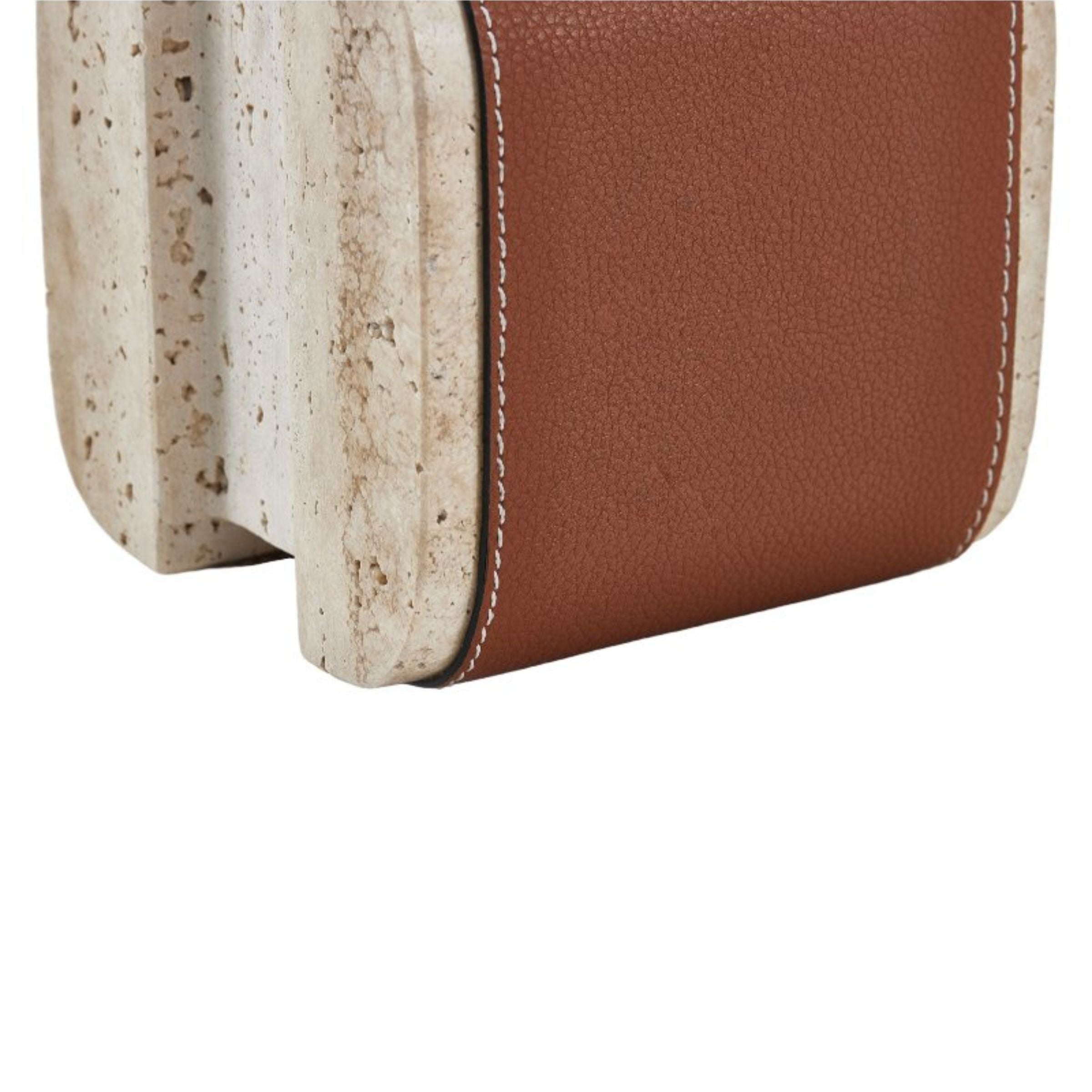 منحوتة مكتبية مصنوعة من الرخام البني والجلد الصناعي H1845