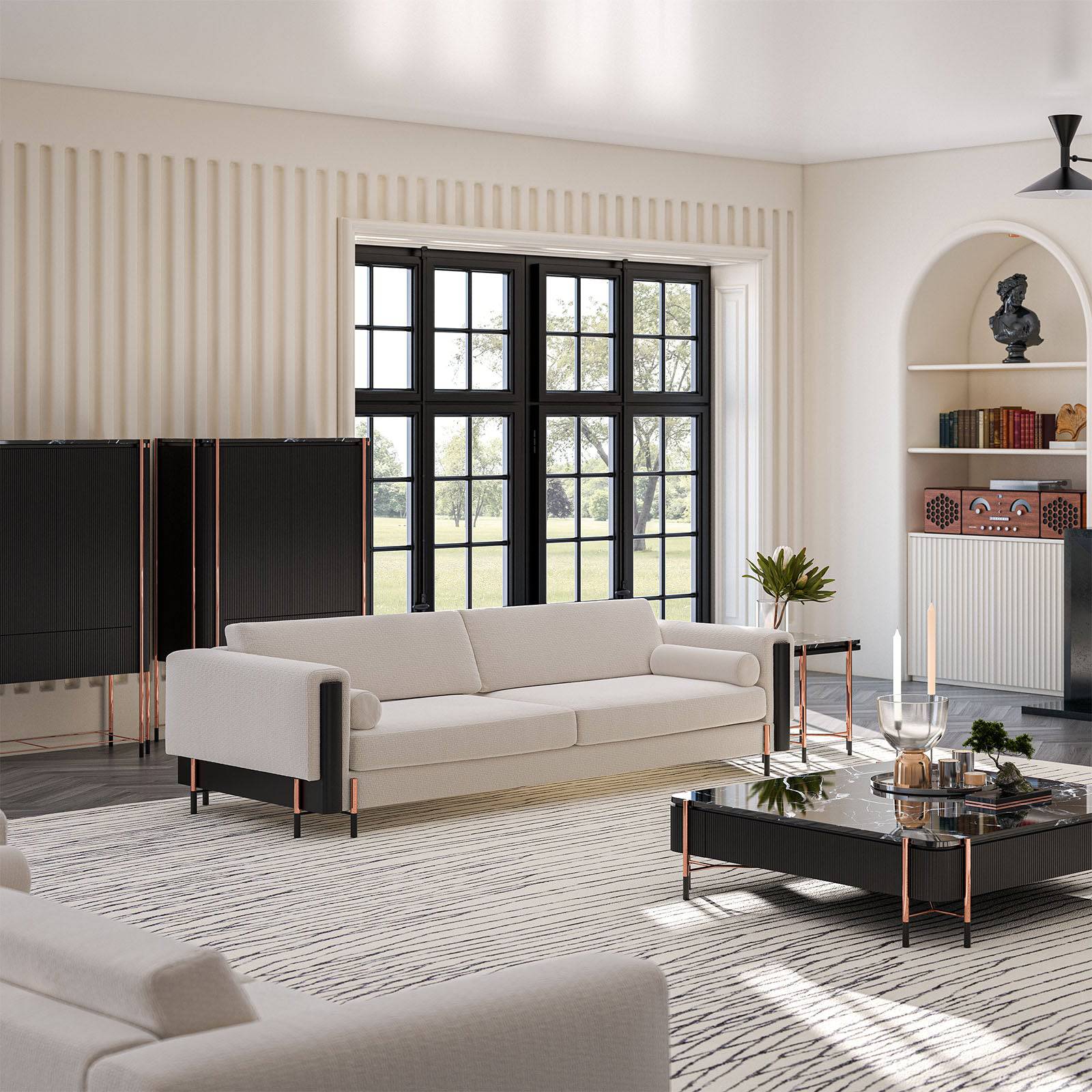 تعرض هذه الأريكة ميزات طموحة للطراز الشمالي. تحافظ أريكة دالي على معايير عالية من جودة القماش ، ولمسة لونية جريئة مع تناغم غير عادي.
