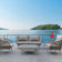 الخطوط النظيفة والمواد الأنيقة تجعل هذه الأريكة الخارجية مميزة. مثالية للاسترخاء الأنيق من الفناء إلى جانب حمام السباحة، فهي مصنوعة بشكل رائع من الألومنيوم والنسيج المتين. مستوحى من المفروشات الحديثة في منتصف القرن، يوازن التصميم متعدد المواد بين الهندسة الأنيقة والتفاصيل الجذابة.