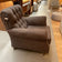 لإضفاء شعور عام بالعمق والجدية، يجب أن يكون الأثاث داكن اللون أيضًا – مع مجموعة من الكراسي الجلدية البنية وهذا الصوفا الكلاسيكي. مظهر قوي وقوي يعكس الرجولة والثروة.