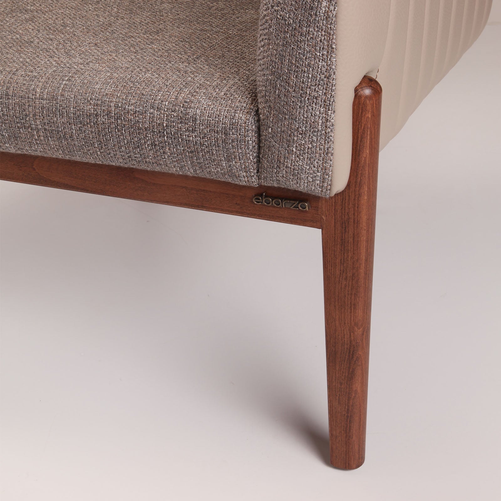 أرجل مصنوعة من خشب الزان الصلب، خلفية من جلد ميكروفايبر، مقعد من قماش قطن |