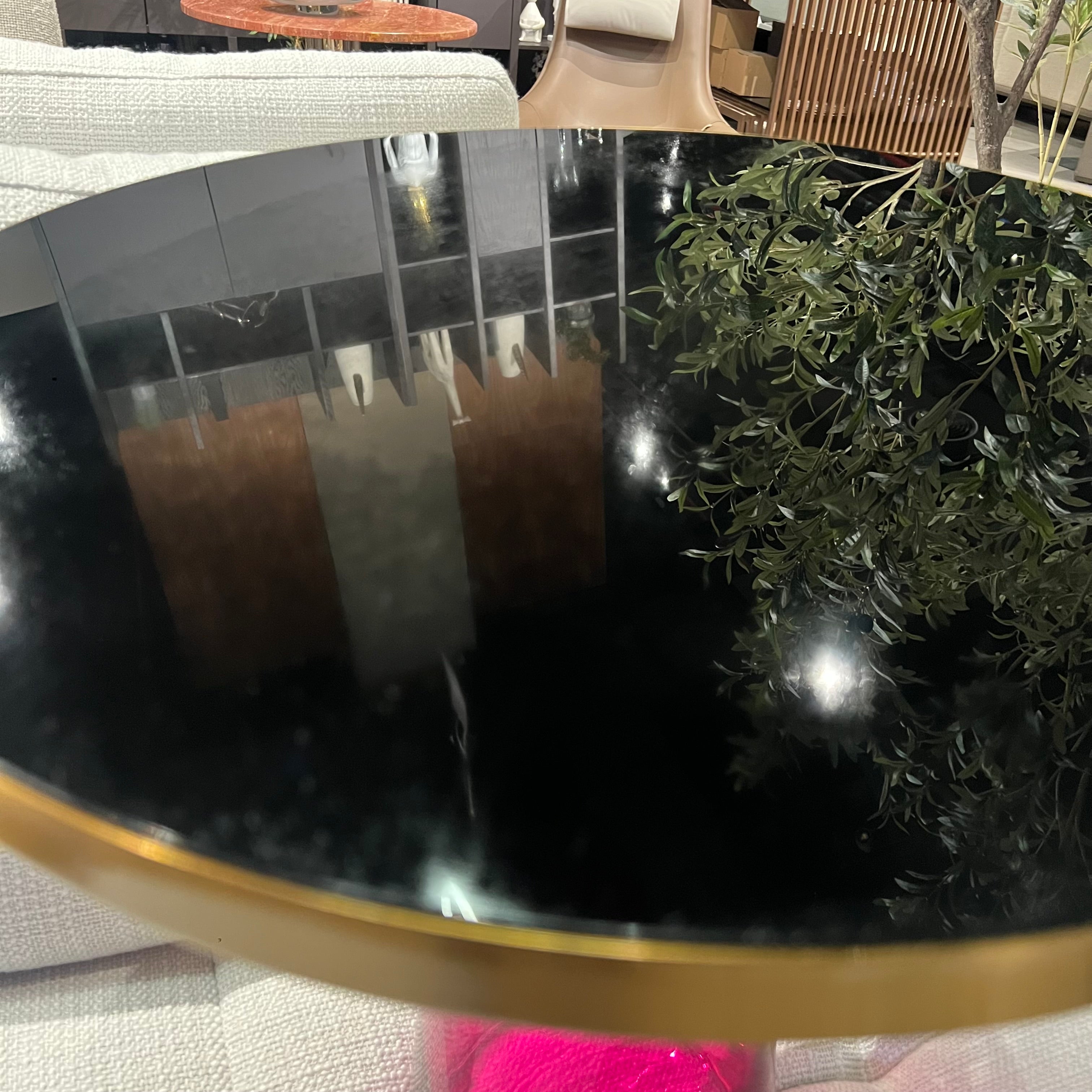تتميز بشكل فريد ومصنوعة من الفولاذ المقاوم للصدأ بلمسة نهائية ذهبية. طاولة القهوة الجميلة هذه مضمونة لتكون أبرز ما في أي غرفة.