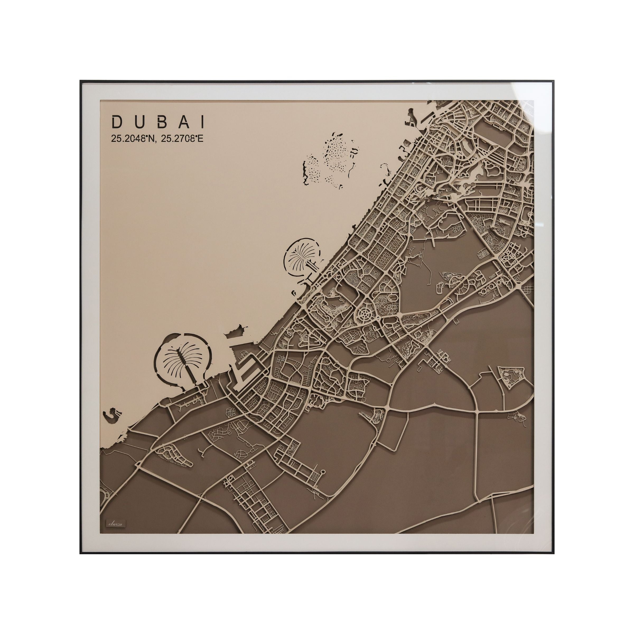 2309H0020-1-Dubai - لوحة خريطة دبي المصنوعة يدويًا - عرض 120 × ارتفاع 120 سم - دبي