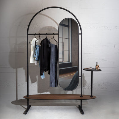 جسم معدني أسود، قاعدة من خشب الجوز الأمريكي، سطح أنثراسيت، مرآة كاملة الطول |