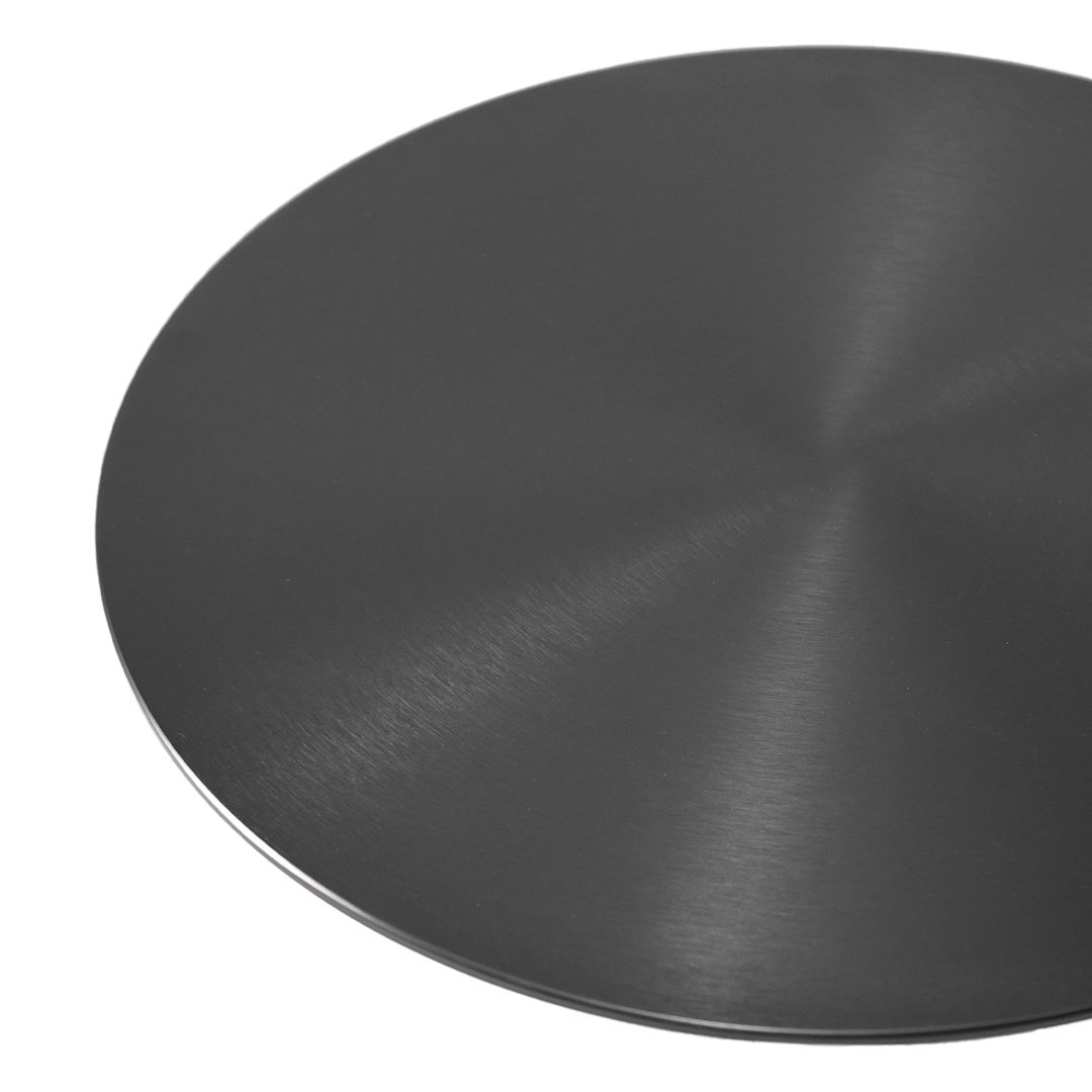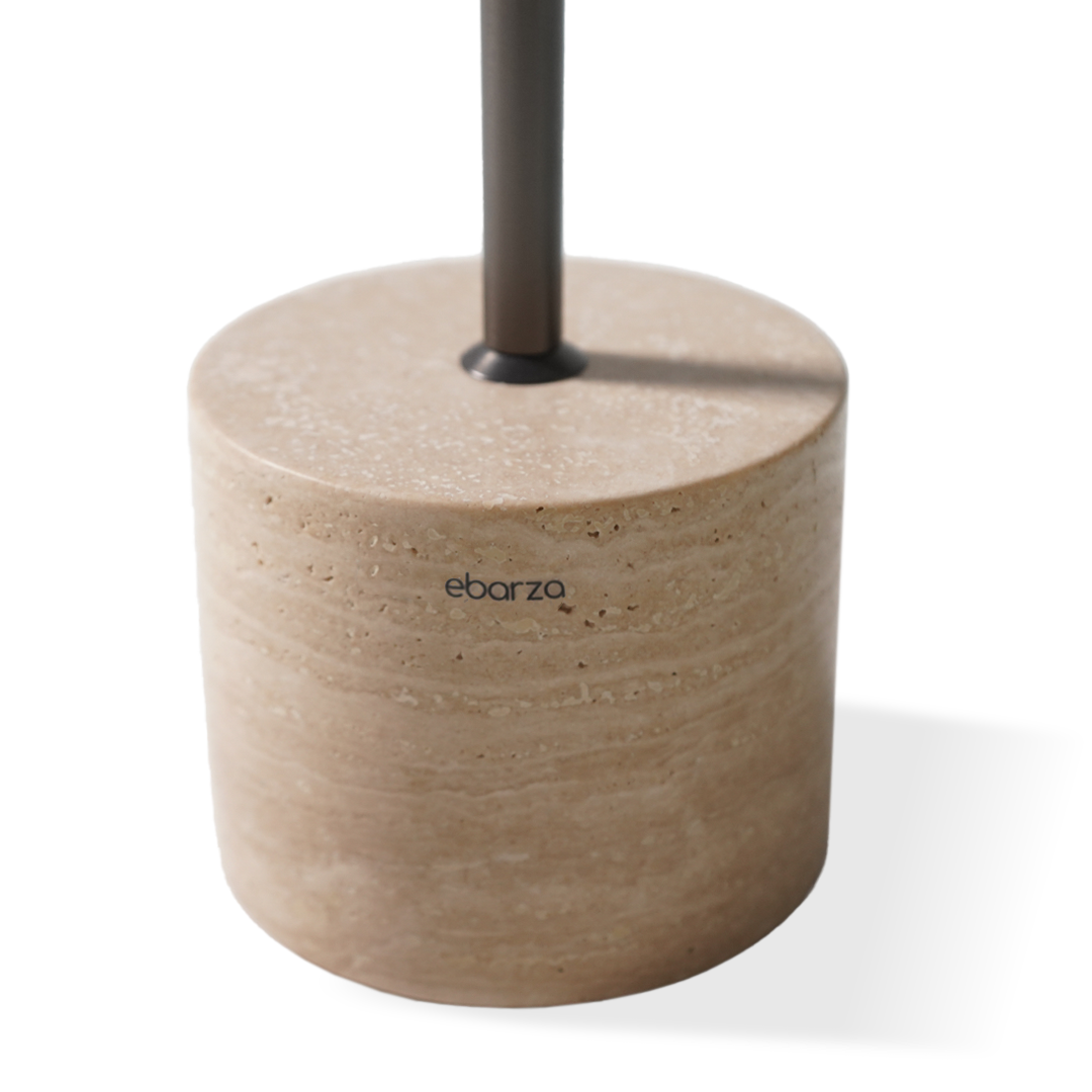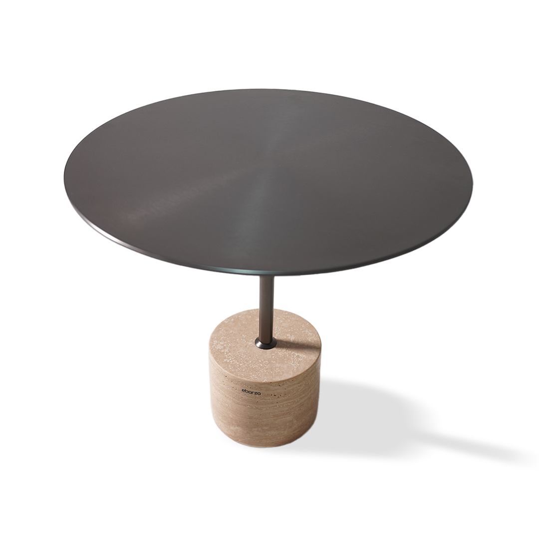 رخام / فولاذ كربوني سطح أسود لامع بلمسة فرش + قاعدة من ترافرتين الطبيعي |