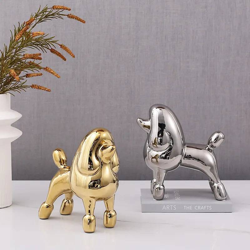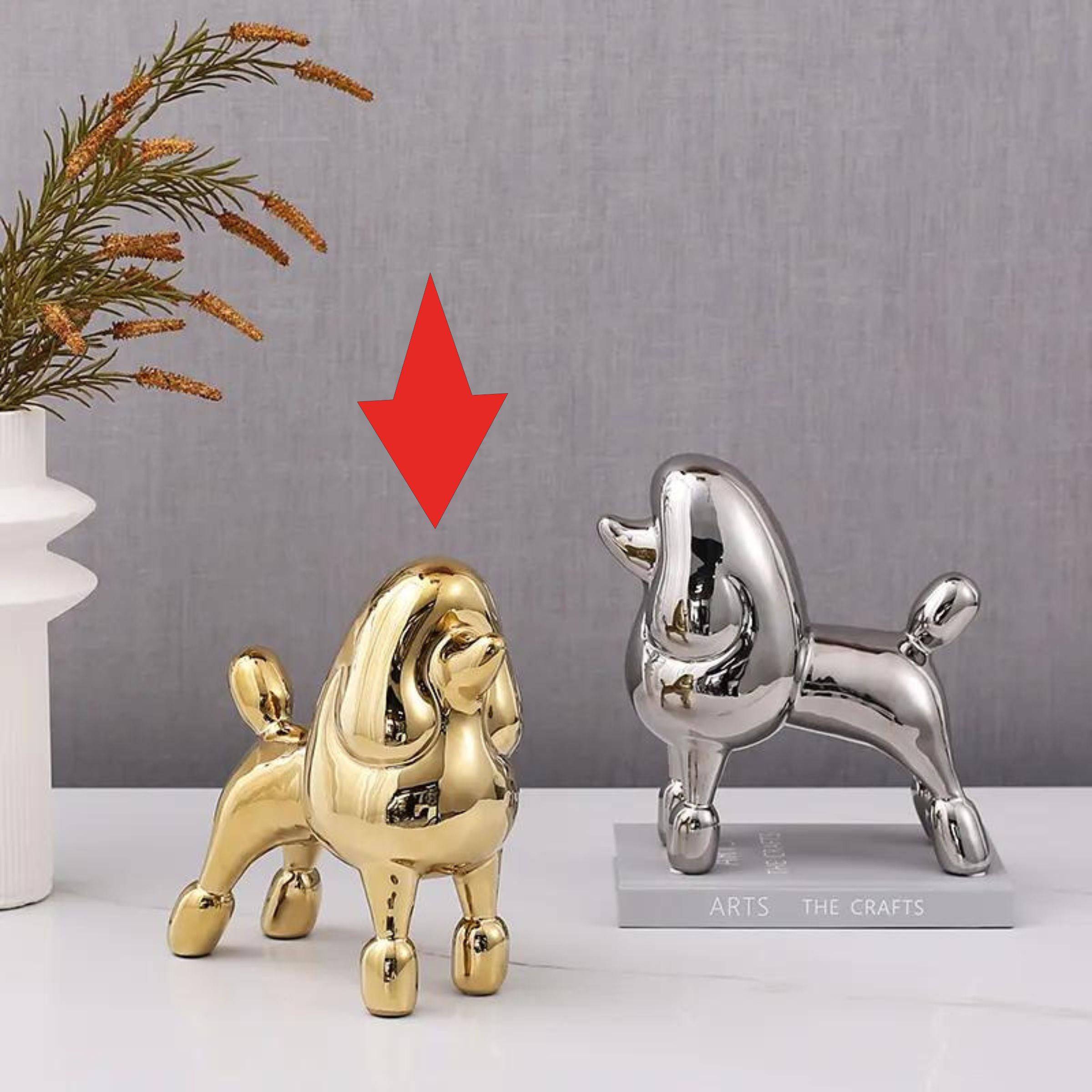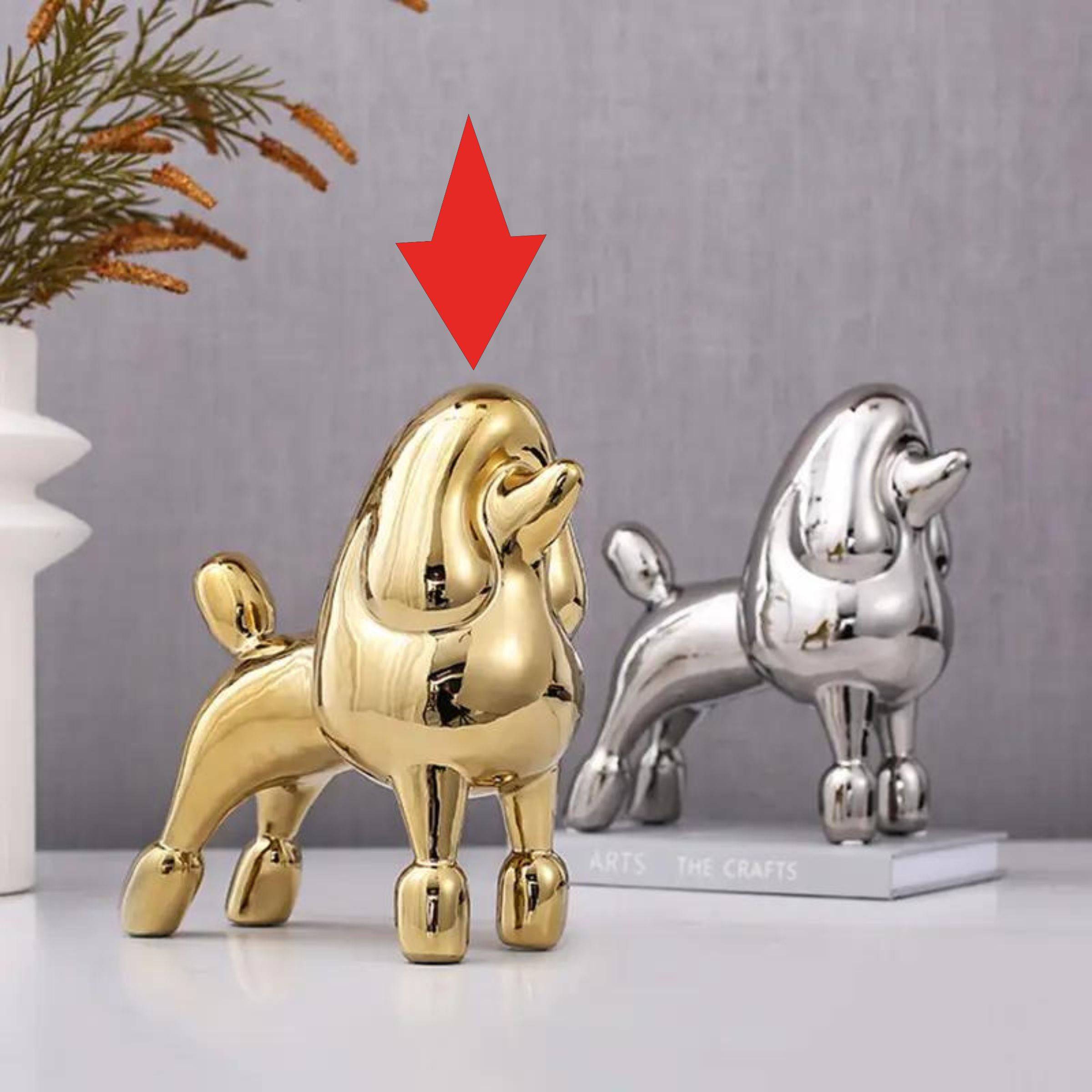 يعتبر تمثال الكلب الذهبي هذا مثاليًا لإضافة لمسة فريدة من الأناقة إلى أي مساحة معيشة. مع لمسة نهائية من السيراميك الذهبي اللامع ، من المؤكد أنها ستلفت الأنظار وتصبح قطعة محادثة. مثالي لأولئك الذين يقدرون الفن والتصميم الحديث.