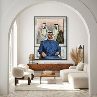 أضف لمسة فريدة إلى منزلك مع لوحة الفسيفساء اليدوية من حجر اليشم الجليدي من إبداع صاحب السمو الشيخ محمد بن زايد. تم صنع هذه القطعة بأبعاد 150×203 سم بدقة وعناية، وتتميز بإطار خشبي رائع يضيف الأناقة والجودة إلى أي مساحة. ارتقِ بديكورك مع هذه الفسيفساء الفريدة من نوعها.