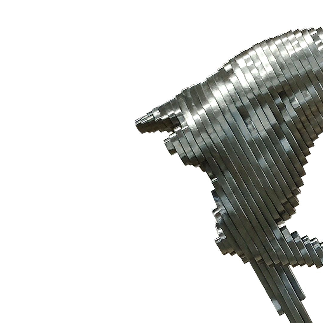 اكتشف عملاً فنياً فاخراً مصنوعاً يدوياً على هيئة حصان، تم تشكيله بدقة متناهية من الستانلس ستيل عالي الجودة بتشطيب أسود معدني (Gun Black) لافت. يجسّد هذا العمل النحتي الأصيل مستوى استثنائياً من الحرفية، حيث يعكس جمال الحركة ورشاقة هيئة الحصان بتفاصيل متقنة تجعل منه إضافة مميزة لأي مساحة داخلية معاصرة أو لمجموعات الفن الرفيع. العمل متوفر للطلب المسبق مع مدة تسليم تقدّر بـ 110 أيام، مما يمنح الحرفيين الوقت اللازم لصناعة تحفتك الخاصة. قطعة خالدة تستثمر في الفن الرفيع والأناقة الراقية.