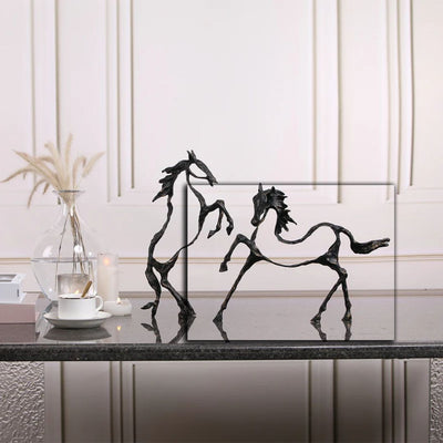 انطلق إلى عالم الإبداع مع الحصان المجوف. مصنوعة من سبيكة برونزية، هذه القطعة المرحة تضيف لمسة من السحر إلى أي مساحة. يضيف تصميمه المجوف لمسة فريدة (حرفيًا) إلى ديكور الفروسية التقليدي. اشعر بالدوار واجلب بعض المرح إلى منزلك!