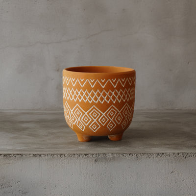 يُعد صندوق الزرع المثلث الفريد من نوعه من تيراكوتا للاستخدام الخارجي/الداخلي إضافة مثالية لحديقتك أو مساحتك الداخلية. مصنوعة من الطين المتين، فهي تضيف لمسة غريبة إلى أي مكان وتوفر طريقة أنيقة لعرض نباتاتك. ارفع مستوى لعبتك الخضراء مع صندوق الزرع الملتوي هذا!