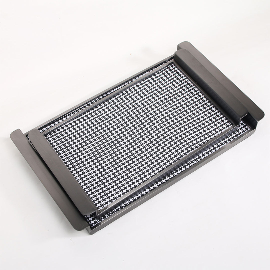 صينية مستطيلة مصنوعة من الجلد المنسوج - L - KC4019BL