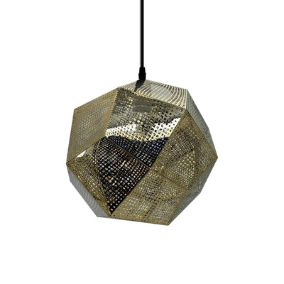 Inspired by the beauty and logic of mathematics, This Pendant is a delicate, airy geode. Each of the panels that comprise the shade are digitally etched with a highly detailed pattern that creates an intricate play of warm light. The ingenuity and beauty of the design are contrasted with the strong, stainless steel used in the construction, for a truly stunning end result.