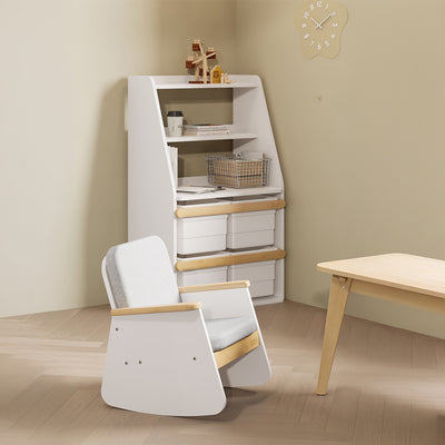 يمثل كرسي تيدي ذو التأرجح للأطفال مزيجاً متناغماً بين الفخامة الهادئة والتصميم الوظيفي. مصمم هندسياً للأطفال الصغار، تتميز هذه القطعة المميزة بحركة تأرجح ناعمة وإيقاعية تشجع على الاسترخاء والراحة. تعكس أبعاده المتناسقة وبناؤه الفاخر اهتماماً دقيقاً بالتفاصيل، مما يجعله إضافة مثالية لغرف الأطفال وغرف النوم المعاصرة. مصمم لتحمل سنوات من الاستخدام، يتجاوز هذا الكرسي الموضة العابرة ليصبح قطعة تذكارية ذات معنى تكنزها العائلات عبر الأجيال.