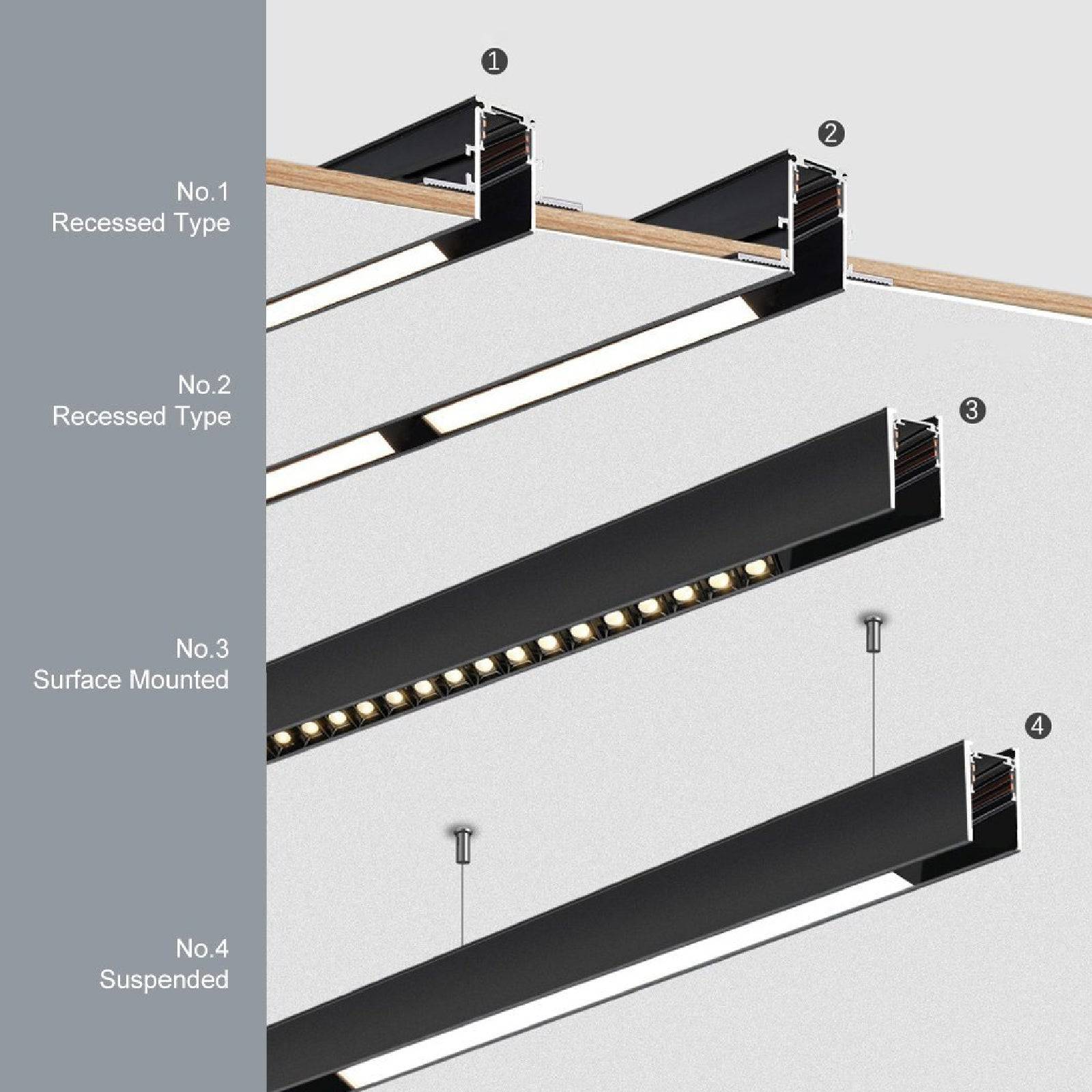 يمكن أن تكون التركيبات المرنة مع تثبيت المسار المغناطيسي مع تطبيقات الإضاءة المتنوعة وفقًا لمتطلبات الاستخدام.