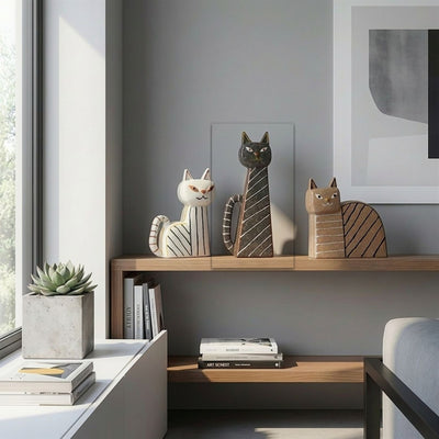 Striped Hand-Painted Ceramic Sand Cat-A FF-D25092A