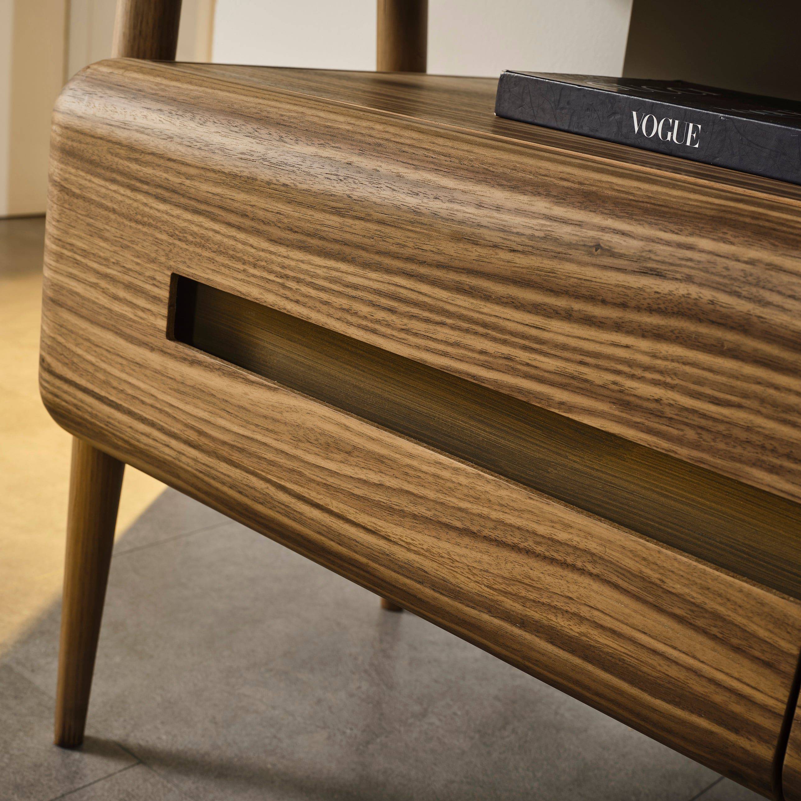 WALNUT VENEER MDF TOP AND SOLID WOOD BASE |