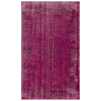This over-dyed Turkish vintage rug is a celebration of both past and present. Created using a technique employed to breathe new life into older hand-knotted rugs, the colors are first neutralized before the rug is over-dyed with its entirely new hue. The original pattern can still be traced, a tribute to the skilled weavers who created it. The quality of the rug shines through, yet the recycled rug now fits perfectly into a contemporary interior design. Consider it not just as a rug, but as a unique piece of contemporary art.