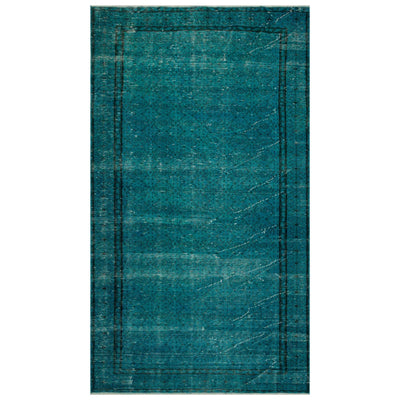 This over-dyed Turkish vintage rug is a celebration of both past and present. Created using a technique employed to breathe new life into older hand-knotted rugs, the colors are first neutralized before the rug is over-dyed with its entirely new hue. The original pattern can still be traced, a tribute to the skilled weavers who created it. The quality of the rug shines through, yet the recycled rug now fits perfectly into a contemporary interior design. Consider it not just as a rug, but as a unique piece of contemporary art.