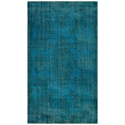 This over-dyed Turkish vintage rug is a celebration of both past and present. Created using a technique employed to breathe new life into older hand-knotted rugs, the colors are first neutralized before the rug is over-dyed with its entirely new hue. The original pattern can still be traced, a tribute to the skilled weavers who created it. The quality of the rug shines through, yet the recycled rug now fits perfectly into a contemporary interior design. Consider it not just as a rug, but as a unique piece of contemporary art.