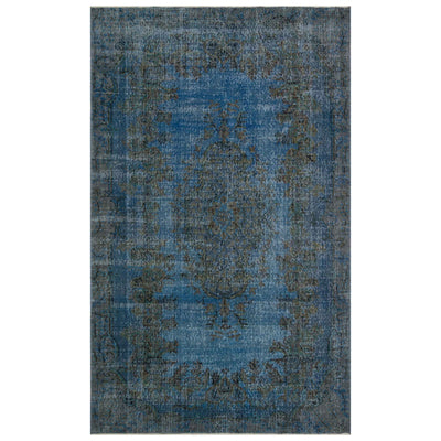 This over-dyed Turkish vintage rug is a celebration of both past and present. Created using a technique employed to breathe new life into older hand-knotted rugs, the colors are first neutralized before the rug is over-dyed with its entirely new hue. The original pattern can still be traced, a tribute to the skilled weavers who created it. The quality of the rug shines through, yet the recycled rug now fits perfectly into a contemporary interior design. Consider it not just as a rug, but as a unique piece of contemporary art.
