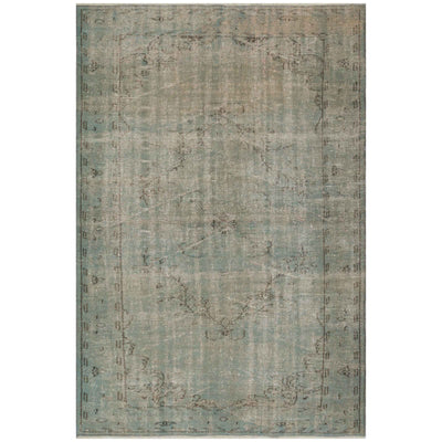 This over-dyed Turkish vintage rug is a celebration of both past and present. Created using a technique employed to breathe new life into older hand-knotted rugs, the colors are first neutralized before the rug is over-dyed with its entirely new hue. The original pattern can still be traced, a tribute to the skilled weavers who created it. The quality of the rug shines through, yet the recycled rug now fits perfectly into a contemporary interior design. Consider it not just as a rug, but as a unique piece of contemporary art.