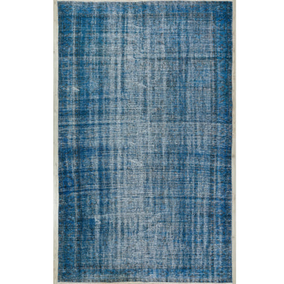 This over-dyed Turkish vintage rug is a celebration of both past and present. Created using a technique employed to breathe new life into older hand-knotted rugs, the colors are first neutralized before the rug is over-dyed with its entirely new hue. The original pattern can still be traced, a tribute to the skilled weavers who created it. The quality of the rug shines through, yet the recycled rug now fits perfectly into a contemporary interior design. Consider it not just as a rug, but as a unique piece of contemporary art.