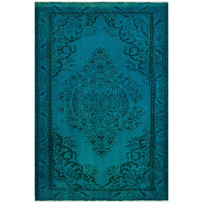 This over-dyed Turkish vintage rug is a celebration of both past and present. Created using a technique employed to breathe new life into older hand-knotted rugs, the colors are first neutralized before the rug is over-dyed with its entirely new hue. The original pattern can still be traced, a tribute to the skilled weavers who created it. The quality of the rug shines through, yet the recycled rug now fits perfectly into a contemporary interior design. Consider it not just as a rug, but as a unique piece of contemporary art.