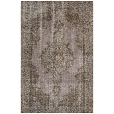 This over-dyed Turkish vintage rug is a celebration of both past and present. Created using a technique employed to breathe new life into older hand-knotted rugs, the colors are first neutralized before the rug is over-dyed with its entirely new hue. The original pattern can still be traced, a tribute to the skilled weavers who created it. The quality of the rug shines through, yet the recycled rug now fits perfectly into a contemporary interior design. Consider it not just as a rug, but as a unique piece of contemporary art.