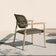 FRAME:BEIGE 70108,SEAT AND BACK IN PVC ROPE:MOCHA HF-0046,OPEN 1X1 WEAVING,WITH TEAK ARMRESTS |