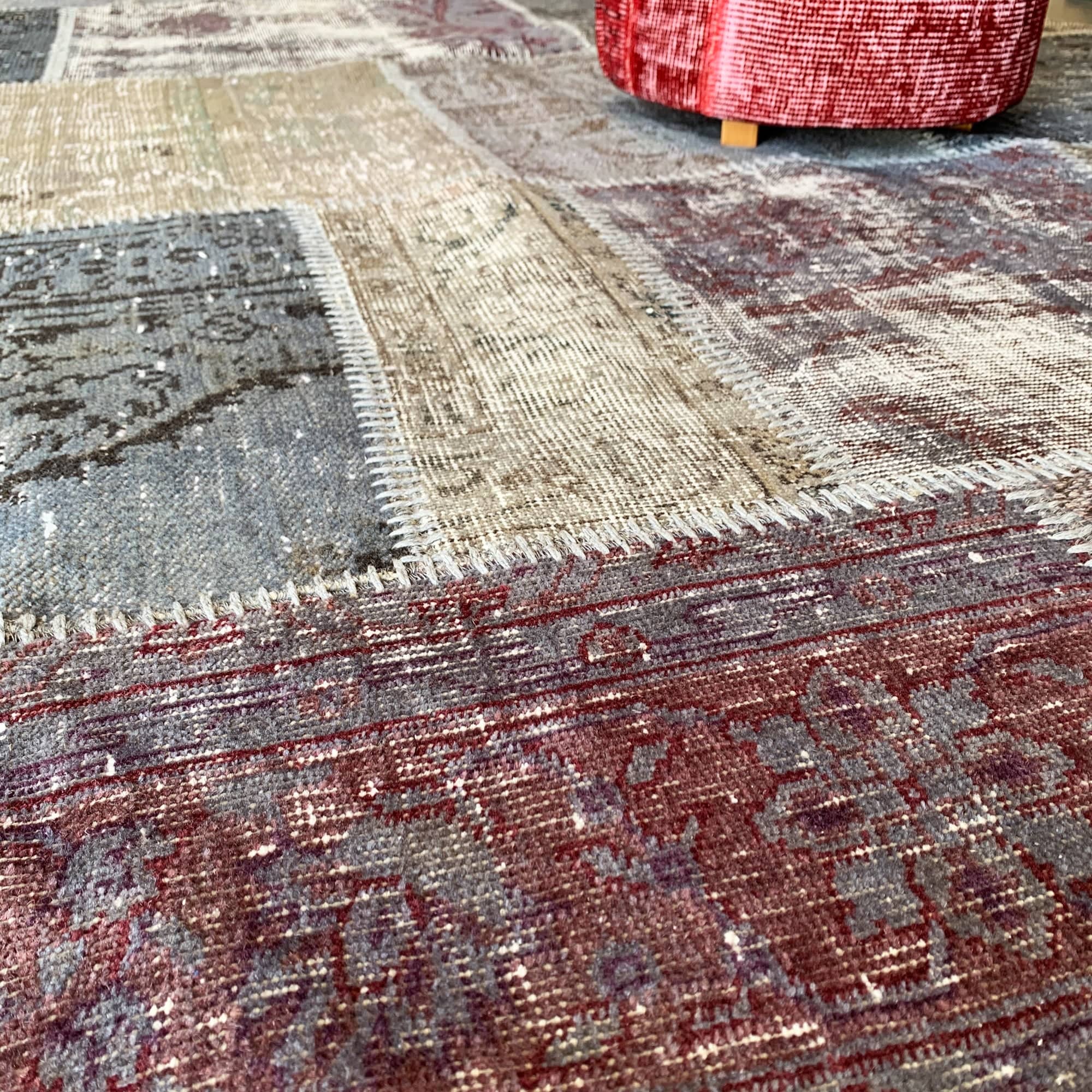 This over-dyed Turkish vintage rug is a celebration of both past and present. Created using a technique employed to breathe new life into older hand-knotted rugs, the colors are first neutralized before the rug is over-dyed with its entirely new hue. The original pattern can still be traced, a tribute to the skilled weavers who created it. The quality of the rug shines through, yet the recycled rug now fits perfectly into a contemporary interior design. Consider it not just as a rug, but as a unique piece of contemporary art.
