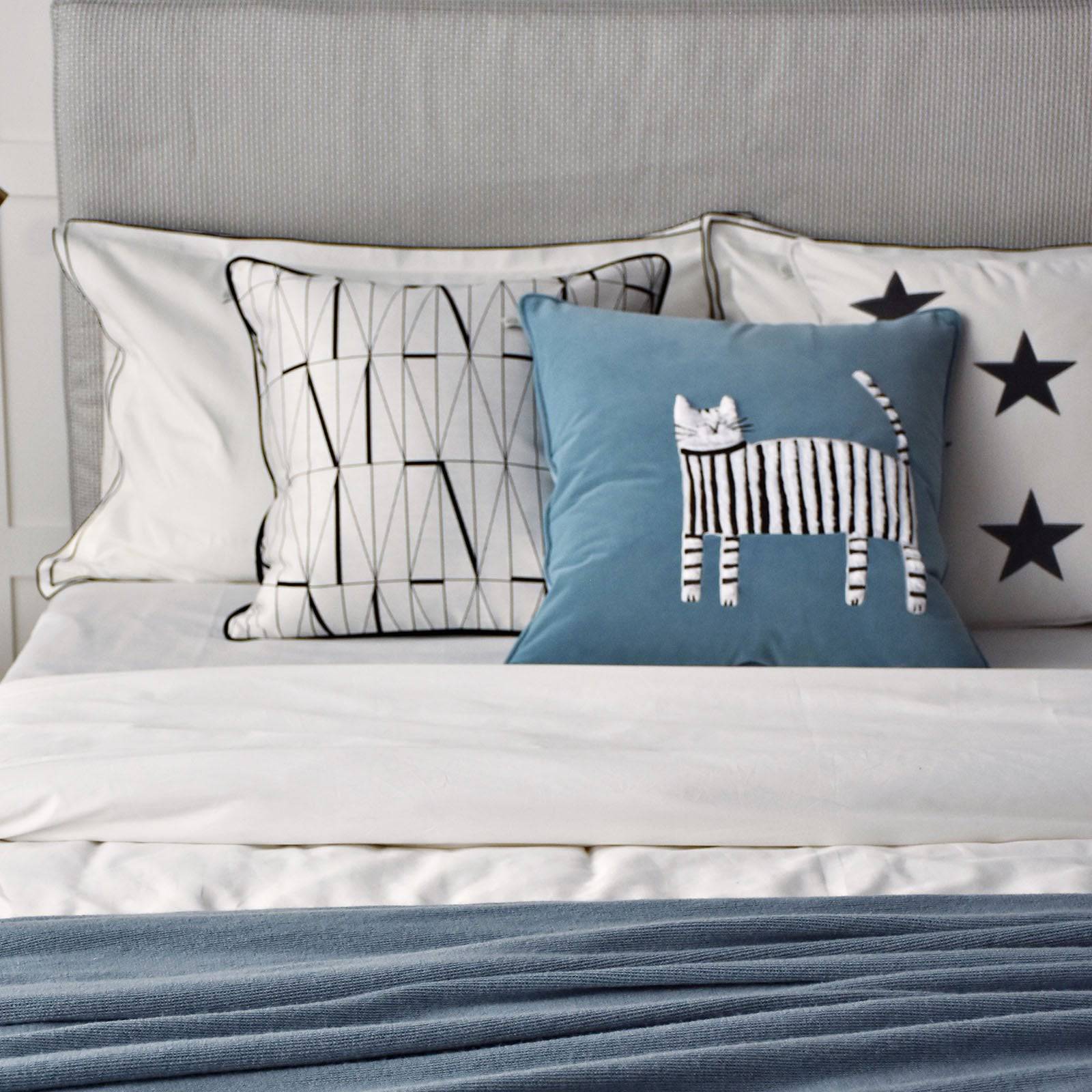 45X45 Cm Striped Cat Embroidered Throw Cushion Ecc-032